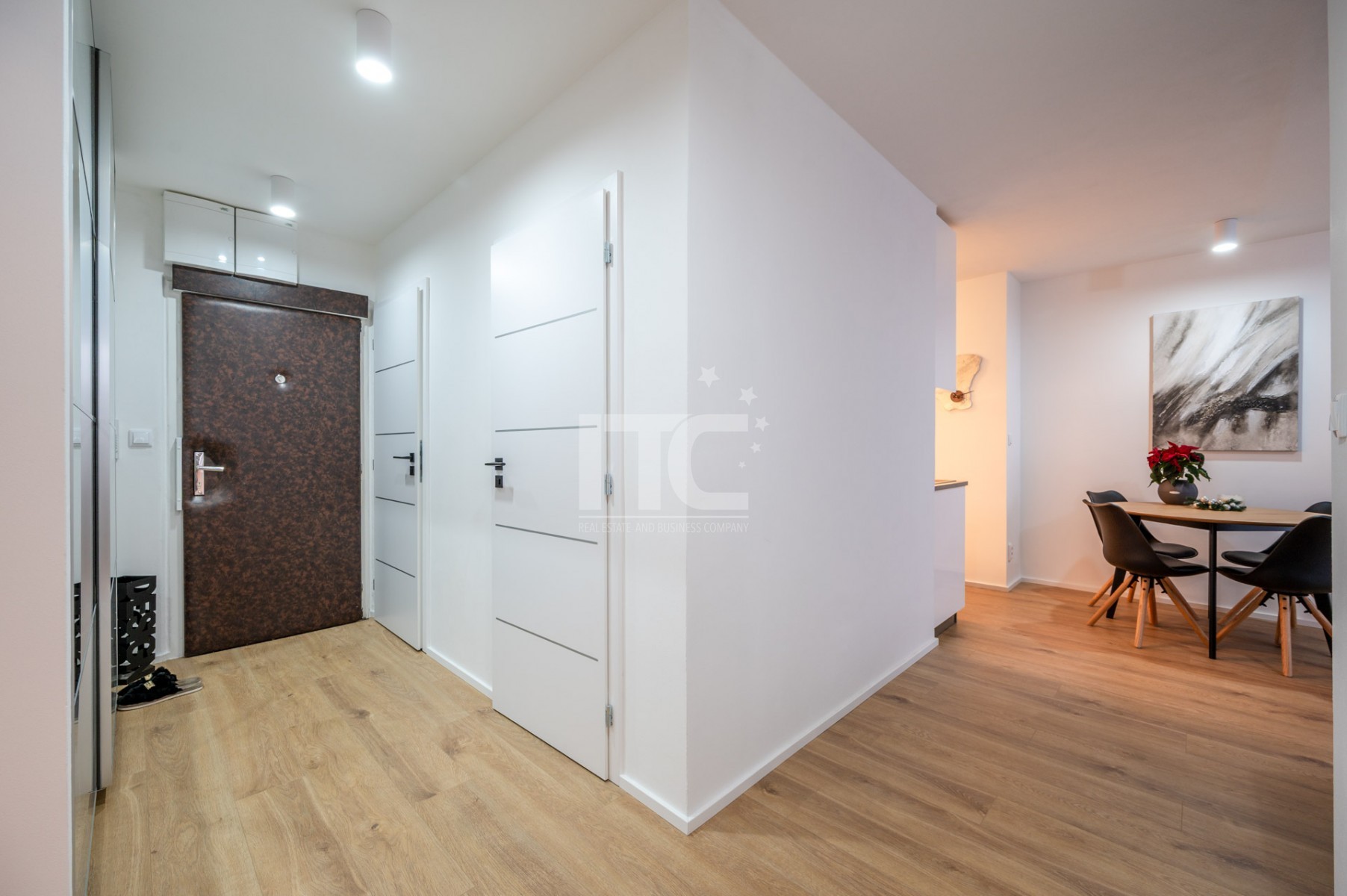 Kompletní rekonstrukce zahrnovala nové rozvody, moderní koupelnu, toaletu, veškeré povrchy a kuchyň plně vybavenou spotřebiči, vestavěnou skříň. Byt je laděn do neutrální, elegantní barevnosti a je částečně zařízen, což umožňuje okamžité užívání i snadné doladění interiéru podle vlastního stylu.
